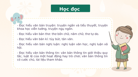 - Đọc hiểu văn bản thơ: thơ bốn chữ, năm chữ, thơ tự do.
