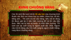 nào trả lời đúng câu hỏi cuối cùng là người chiến thắng, rung được chuông vàng. Câu hỏi 1