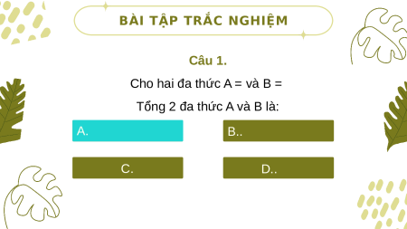 Tổng 2 đa thức A và B là: A. B.. C. D..