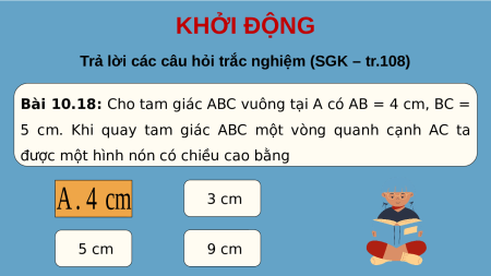 Bài 10.18: Cho tam giác ABC vuông tại A có AB = 4 cm, BC =
