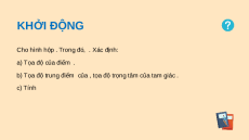 b) Tọa độ trung điểm của , tọa độ trọng tâm của tam giác . c) Tính Giải: a) Ta có: .
