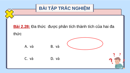 Bài 2.28: Đa thức được phân tích thành tích của hai đa thức A. và B. và C. và D. và