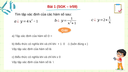 Tìm tập xác định của các hàm số sau: 1 1