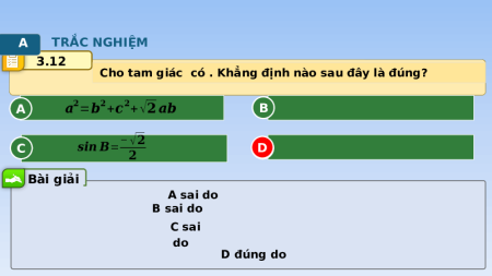 Cho tam giác có . Khẳng định nào sau đây là đúng? ? A