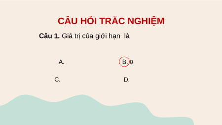 Câu 1. Giá trị của giới hạn là A. B. 0 C. D.