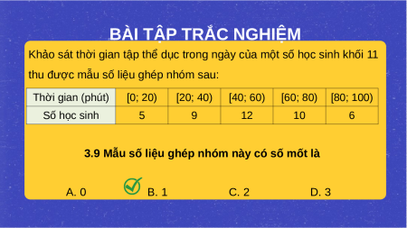 Khảo sát thời gian tập thể dục trong ngày của một số học sinh khối 11 thu
