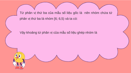 Tứ phân vị thứ nhất của mẫu số liệu gốc là nên nhóm chứa tứ phân vị thứ nhất là nhóm [5,5; 6) và ta có:
