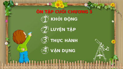 ÔN TẬP CUỐI CHƯƠNG 3 1 KHỞI ĐỘNG 2 LUYỆN TẬP 3 THỰC HÀNH 4 VẬN DỤNG 1 KHỞI ĐỘNG PHIẾU BÀI TẬP