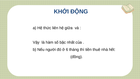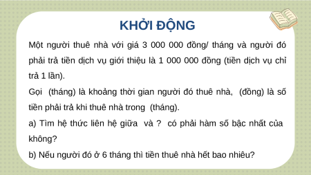 b) Nếu người đó ở 6 tháng thì tiền thuê nhà hết bao nhiêu? KHỞI ĐỘNG