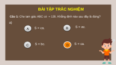 Câu 1: Cho tam giác ABC có = 135. Khẳng định nào sau đây là đúng? a) S = ca. S = ac. A B S = bc. S = ca. C D