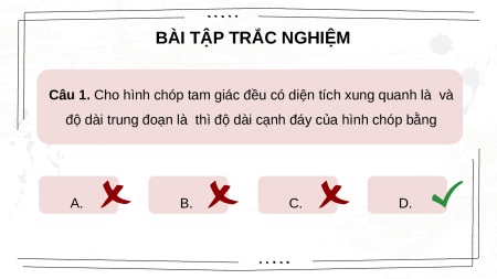 Câu 1. Cho hình chóp tam giác đều có diện tích xung quanh là và