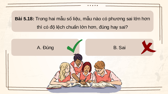 thì có độ lệch chuẩn lớn hơn, đúng hay sai? A. Đúng B. Sai