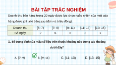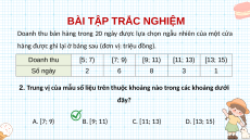 hàng được ghi lại ở bảng sau (đơn vị: triệu đồng). Doanh thu [5; 7) [7; 9) [9; 11) [11; 13) [13; 15) Số ngày 2 6 8 3 1