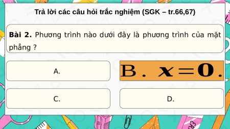 Bài 2. Phương trình nào dưới đây là phương trình của mặt phẳng ? A. B.