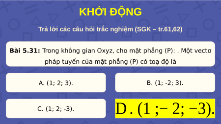 Bài 5.31: Trong không gian Oxyz, cho mặt phẳng (P): . Một vectơ