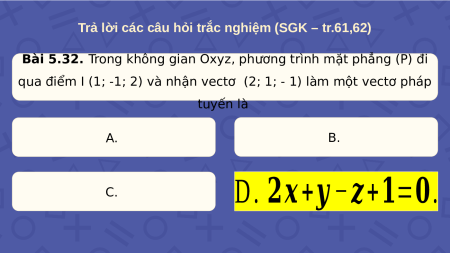 Bài 5.32. Trong không gian Oxyz, phương trình mặt phẳng (P) đi
