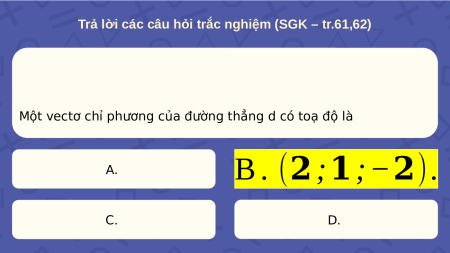 Trả lời các câu hỏi trắc nghiệm (SGK – tr.61,62)