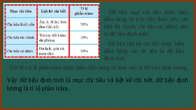 Vậy dữ liệu định tính là mục chi tiêu và liệt kê chi tiết, dữ liệu định