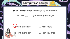 các điểm , , , . Tứ giác MNPQ là hình gì? A. Hình bình hành C. Hình vuông B. Hình thang cân D. Hình chữ nhật