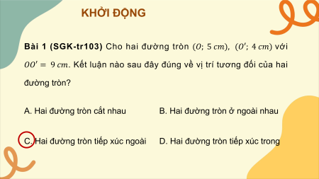 C. Hai đường tròn tiếp xúc ngoài D. Hai đường tròn tiếp xúc trong KHỞI ĐỘNG