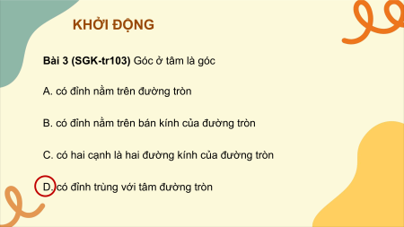 Bài 3 (SGK-tr103) Góc ở tâm là góc