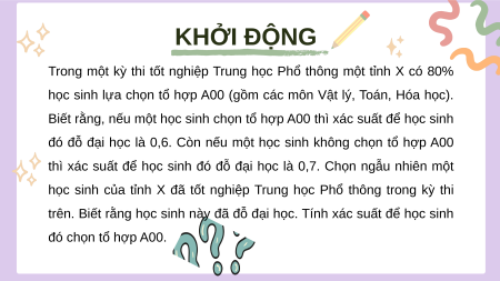 đó đỗ đại học là 0,6. Còn nếu một học sinh không chọn tổ hợp A00