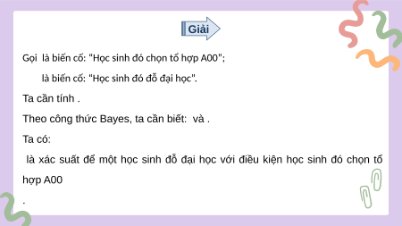 trên. Biết rằng học sinh này đã đỗ đại học. Tính xác suất để học sinh đó chọn tổ hợp A00. Giải