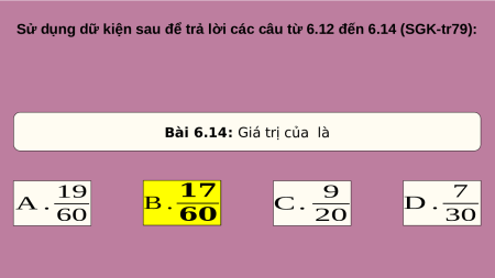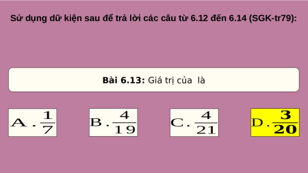 Bài 6.13: Giá trị của là 1 4 4 3 𝟑 A . B . C . D . . 7 1 9 21 20 𝟐𝟎