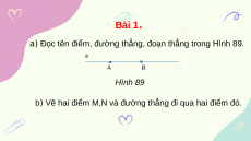 a) Đọc tên điểm, đường thẳng, đoạn thẳng trong Hình 89.