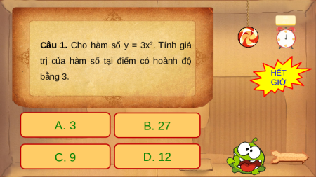 trị của hàm số tại điểm có hoành độ bằng 3. HẾT GIỜ A. 3 B. 27 C. 9 D. 12 Bắt đầu!