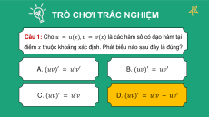 Câu 1: Cho 𝑢 = 𝑢(𝑥), 𝑣 = 𝑣(𝑥) là các hàm số có đạo hàm tại