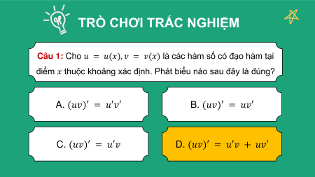 Câu 2: Cho 𝑢 = 𝑢(𝑥), 𝑣 = 𝑣(𝑥) là các hàm số có đạo hàm tại