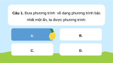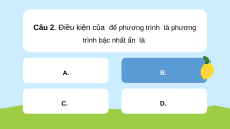 Câu 2. Điều kiện của để phương trình là phương trình bậc nhất ẩn là A. B. C. D.