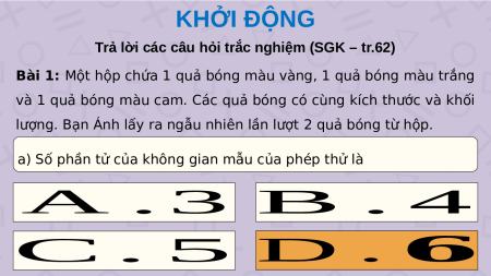 lượng. Bạn Ánh lấy ra ngẫu nhiên lần lượt 2 quả bóng từ hộp.