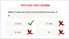 Câu 2. Khoảng cách giữa hai đường thẳng song song và là: A. 10,1. C. 101. B. 1,01. D. .