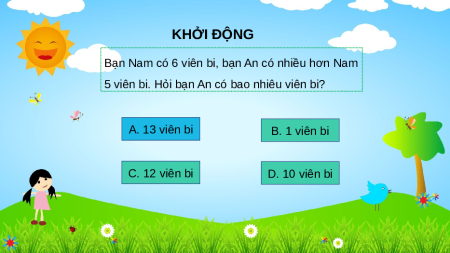 5 viên bi. Hỏi bạn An có bao nhiêu viên bi? A. 13 vi 13 v ên bi B. 1 viên bi C. 12 viên bi D. 10 viên bi