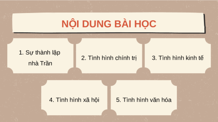 THỜI TRẦN (1226 – 1400) NỘI DUNG BÀI HỌC 1. Sự thành lập 2. Tình hình chính trị 3. Tình hình kinh tế nhà Trần 4. Tình hình xã hội 5. Tình hình văn hóa