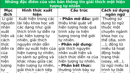 giải thích một hiện tượng tự nhiên Mục đích Hình thức Cấu trúc Cách sử xuất hiện dụng ngôn ngữ