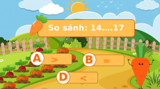 Tớ cần hai củ cà rố X t đ in ể c ch hà uẩ KHỞI o nc b á ị c ĐỘNG bữa tối. Các bạn bạn! giúp tớ nhé! So sánh: 14….17 A > B = D < Hoan hô Các bạn thật giỏi!