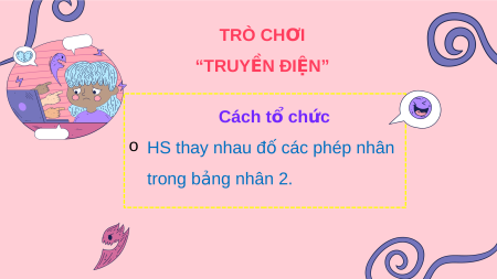 CHÀO M N Ừ G CÁC EM CÙNG Đ N V Ế I Ớ TI T H Ế C H Ọ ÔM NAY! TRÒ CH I Ơ “TRUY N Ề ĐI N Ệ ” Cách t ổ ch c ứ o HS thay nhau đ ố các phép nhân trong b ng ả nhân 2. BÀI: B NG CH Ả IA 2 NỘI DUNG BÀI H C Ọ 1. Thành l p ậ b n ả g chia 2 2. H c ọ thu c ộ b n ả g chia 2 3. Luy n ệ t p ậ 4. C n ủ g c ố ki n ế th c ứ