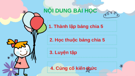 2. Học thuộc bảng chia 5 3. Luyện tập