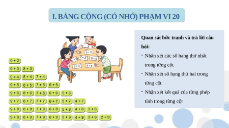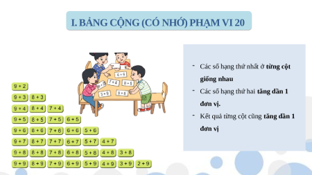 I. BẢNG CỘNG (CÓ NHỚ) PHẠM VI 20
