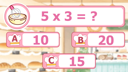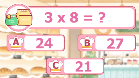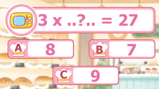 5 x 3 = ? A 10 B 20 C 15 3 x 8 = ? A 24 B 27 C 21 3 x ..?.. = 27 A 8 B 7 C 9