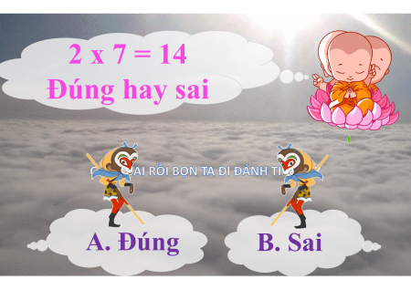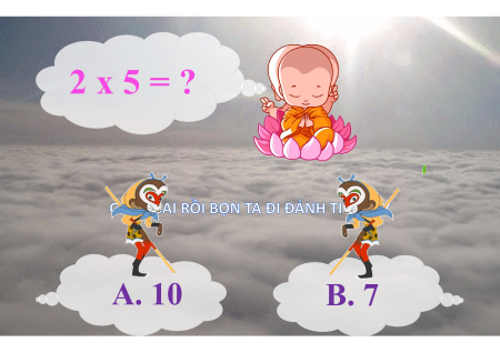 Ngộ Không thật Ngộ Không giả 2 x 5 = ? A. 10 B. 7 2 x 8 = ? A. 15 B. 16