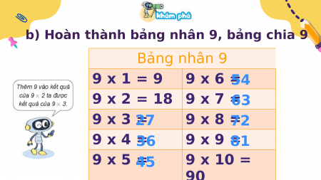 b) Hoàn thành bảng nhân 9, bảng chia 9