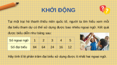 được biểu diễn như bảng sau: Số ngoại ngữ 1 2 3 4 5 Số đại biểu 84 64 24 16 12