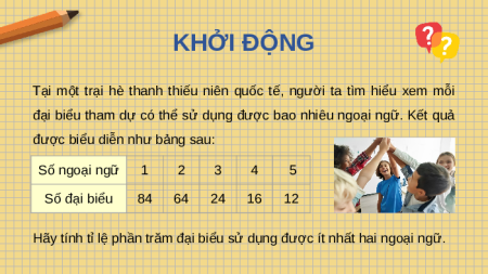 Hãy tính tỉ lệ phần trăm đại biểu sử dụng được ít nhất hai ngoại ngữ. CHƯƠNG 7.