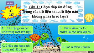 không phải là số liệu? A. Cân nặng của học B . Điểm kiểm tra 15 sinh trong một lớp (kg)