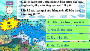 Câu 4: Sáng thứ 7 cửa hàng A bán được 5kg táo,