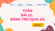 Thứ …. ngày … tháng ….. năm 2024 TOÁN BÀI 12: BẢNG TRỪ (QUA 10) S/47